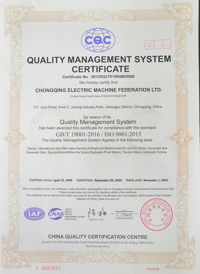 公司傳承了原重慶電機廠先進的電機制造技術和管理經(jīng)驗,建立了按現(xiàn)代企業(yè)制度管理方式的法人治理機制,是國家重點企業(yè)及研發(fā)、生產(chǎn)和銷售各型交流異步電動機、交流同步電動機、直流電動機、汽車電機、軌道牽引電機、水輪發(fā)電機及發(fā)電機組和其它特殊電機的專業(yè)制造廠家。
